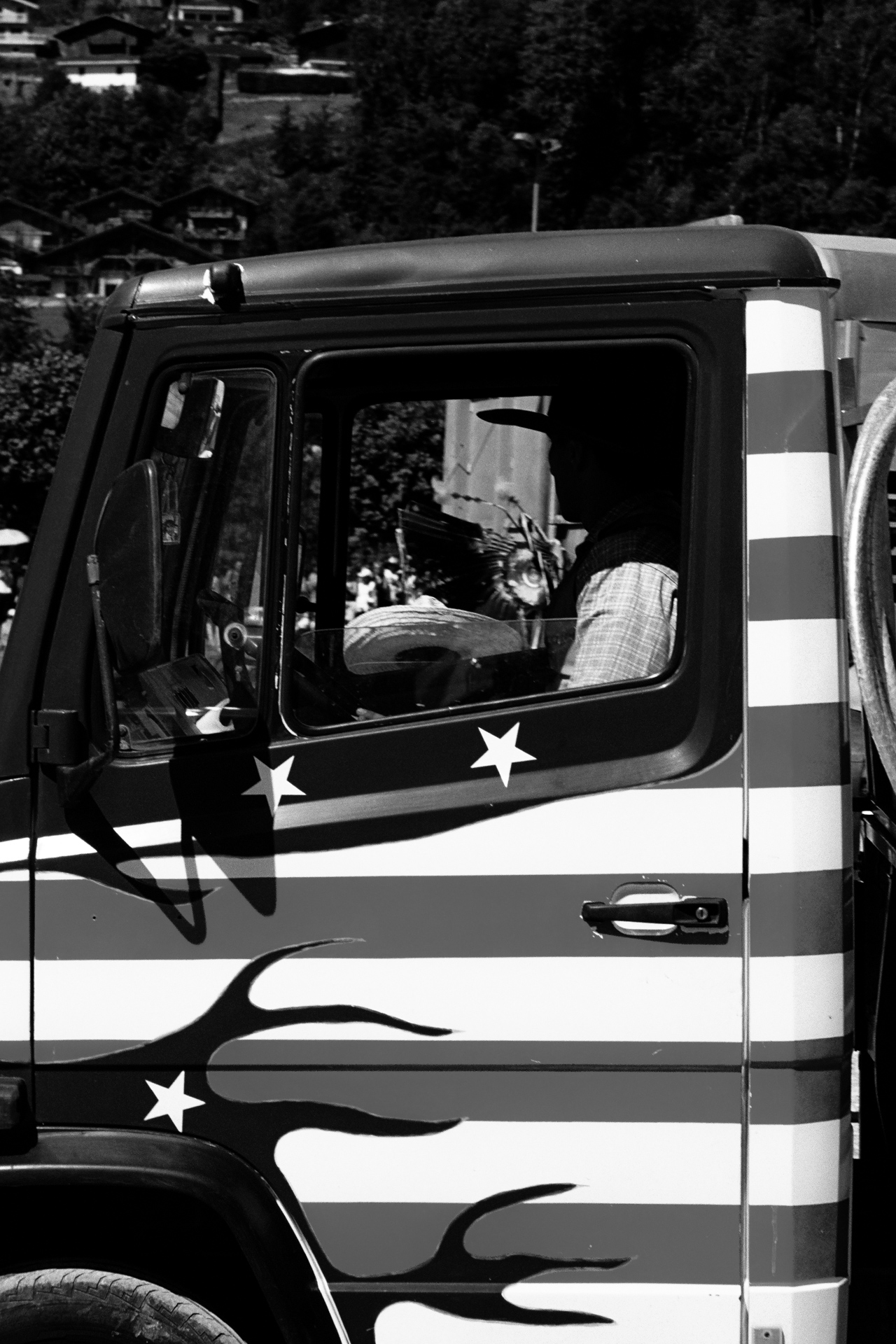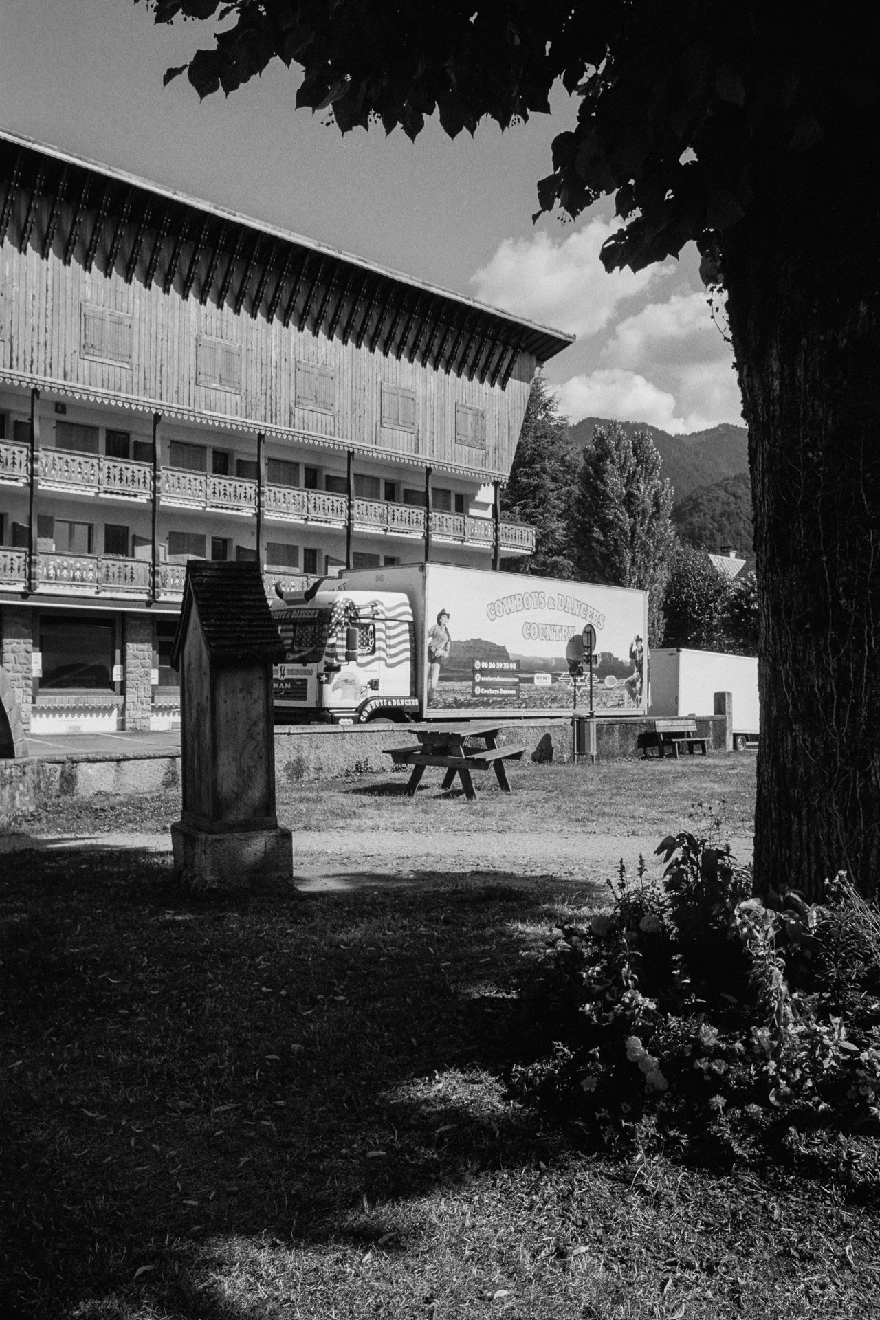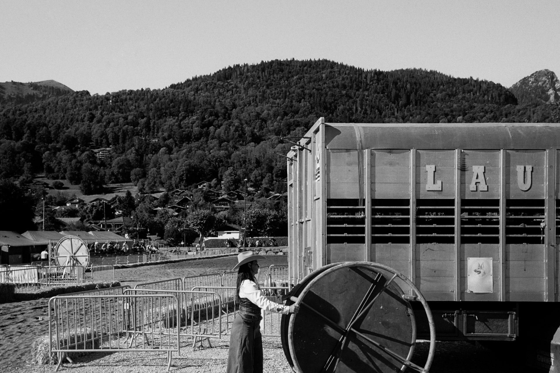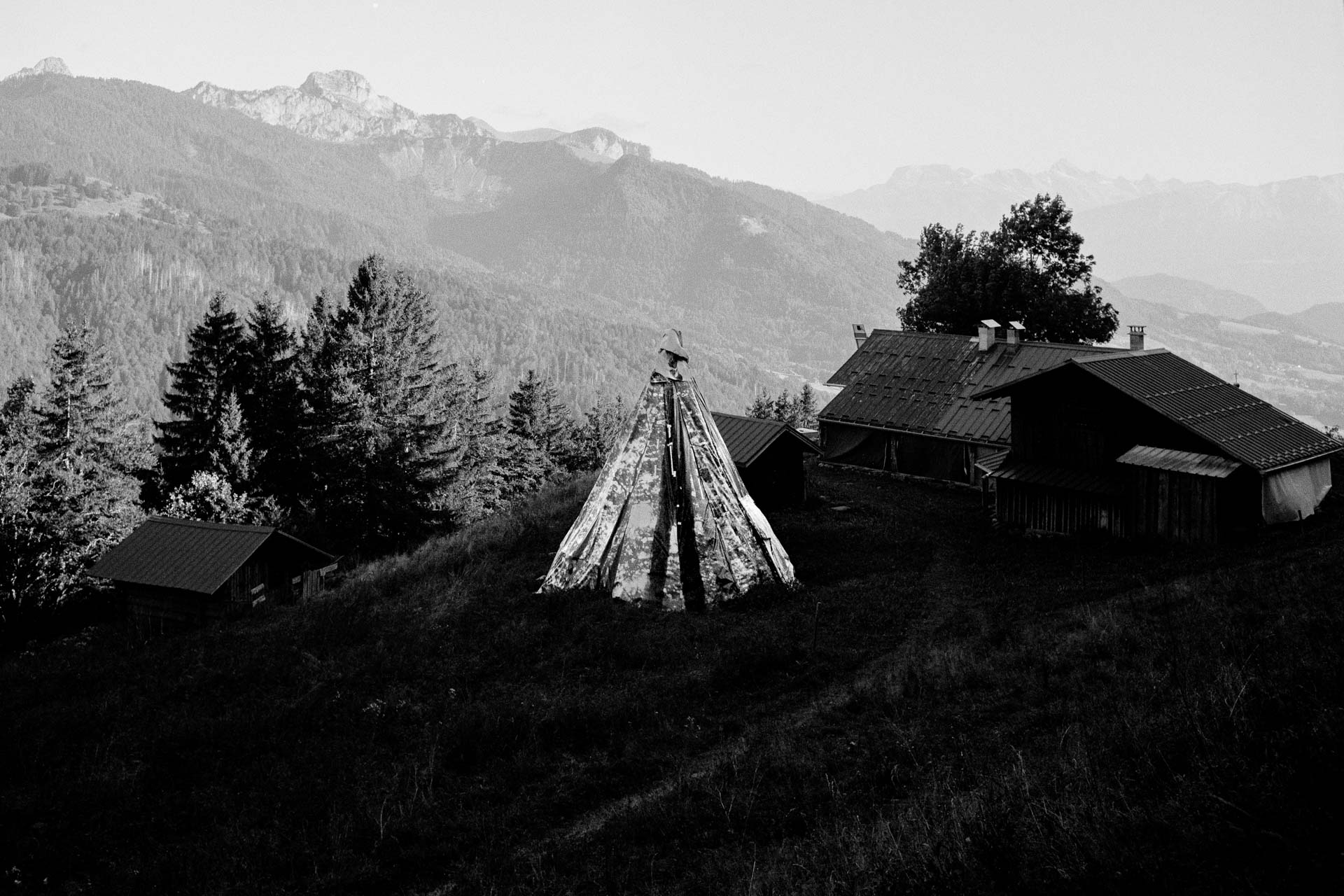 C’est au mois de juin 2024 que démarre mon enquête, lors de la 15ème édition du festival américain de Samoëns. J’ai pu y trouver les premiers indices aux questions qui ne cessaient de bouleverser mon rapport à cette région, à sa compréhension et à sa représentation. Ce qui s’est joué ici a été pour moi représentatif d’une réalité hypothétique, d’une intuition devenue presque irrationnelle ; celle de l’influence de la culture américaine sur la Haute-Savoie, et plus particulièrement, sur les vallées industrielles, les paysages ruraux et alpins, que j’arpente depuis 2018. Les ressorts économiques souterrains, alternatifs et autogestionnaires hauts-savoyards fascinent par la potentialité d’un modèle local et écologique désirable, ancré au territoire, à sa tradition industrielle et agricole. Au fond des vallées, cette utopie s’associe pourtant de manière ambiguë à des formes radicales de libéralisme, qui n’est pas sans rappeler la résurgence libertarienne aux Etats-Unis ; le rejet de l’Etat, des institutions et du monde urbain. L’élection de Donald Trump en novembre 2025 par l’électorat populaire américain éclaire les contradictions et le trouble de la représentativité politique que je tente de documenter ici, en Haute-Savoie.